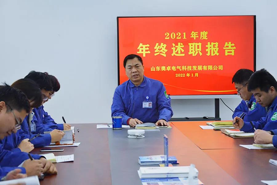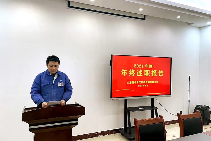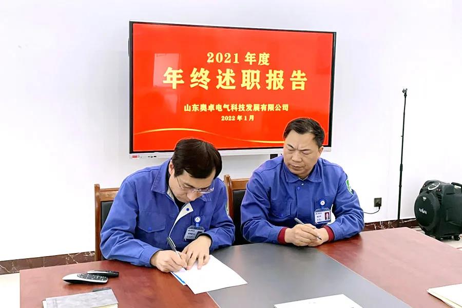 新起點(diǎn)承載新夢(mèng)想,新希望邁向新征程,2022年1月20日,山東奧卓電氣科技發(fā)展有限公司2021年度管理者年終述職報(bào)告會(huì)暨2022年度管理者崗位職責(zé)實(shí)施責(zé)任書簽訂儀式圓滿結(jié)束。奧卓科技董事長(zhǎng)張慶平、常務(wù)副總張曉、副總經(jīng)理婁增磊、總經(jīng)理助理竇金姿出席會(huì)議,公司各部門管理人員參加會(huì)議并作述職報(bào)告。